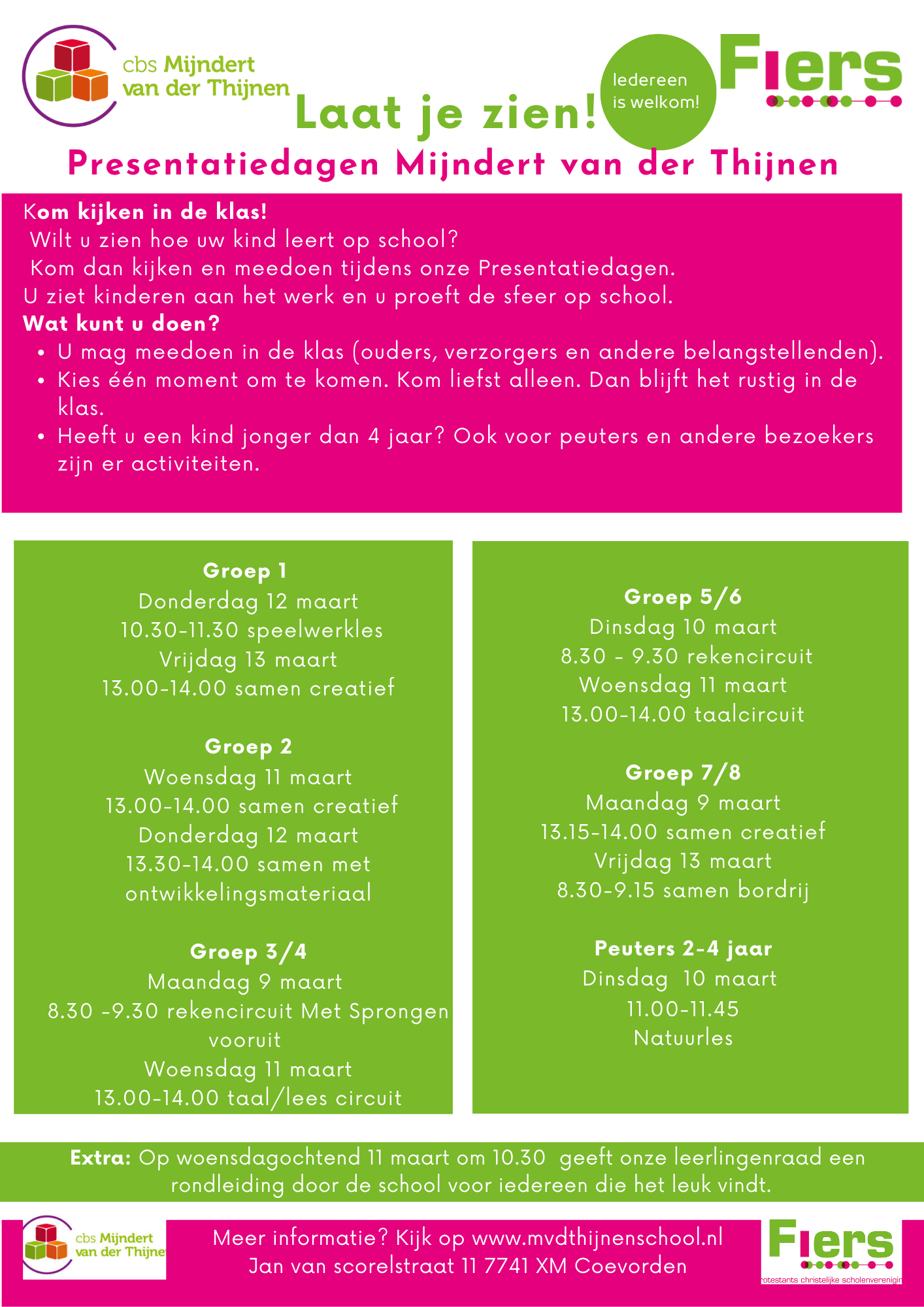 stellen we de school weer open voor ouders en belangstellenden. Op de afbeelding vindt u de verdere informatie en tijden.